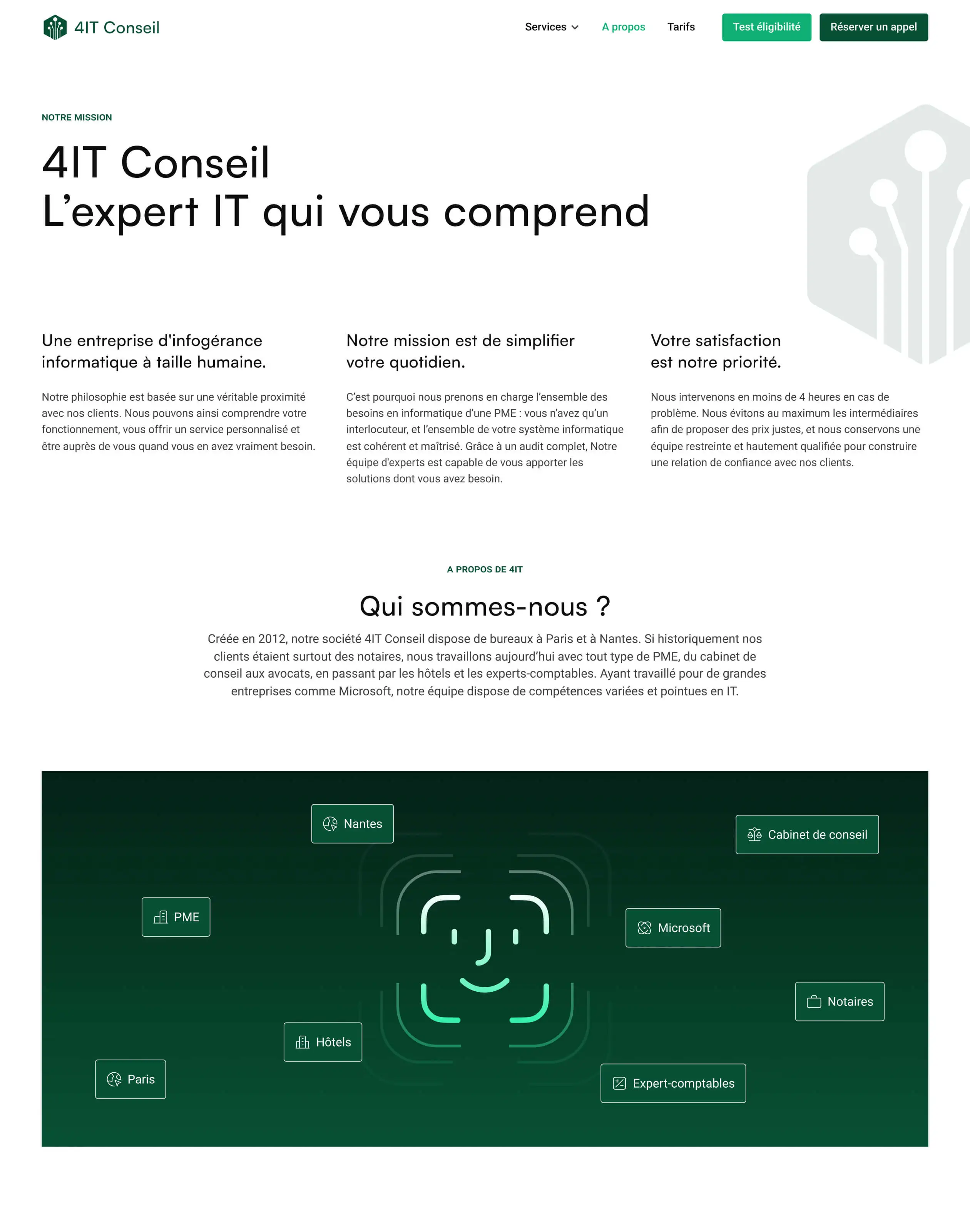 Refonte du site de 4IT Conseil, spécialiste de l'infogérance informatique pour PME. Web design, motion design et assets pour une expérience fluide et moderne.