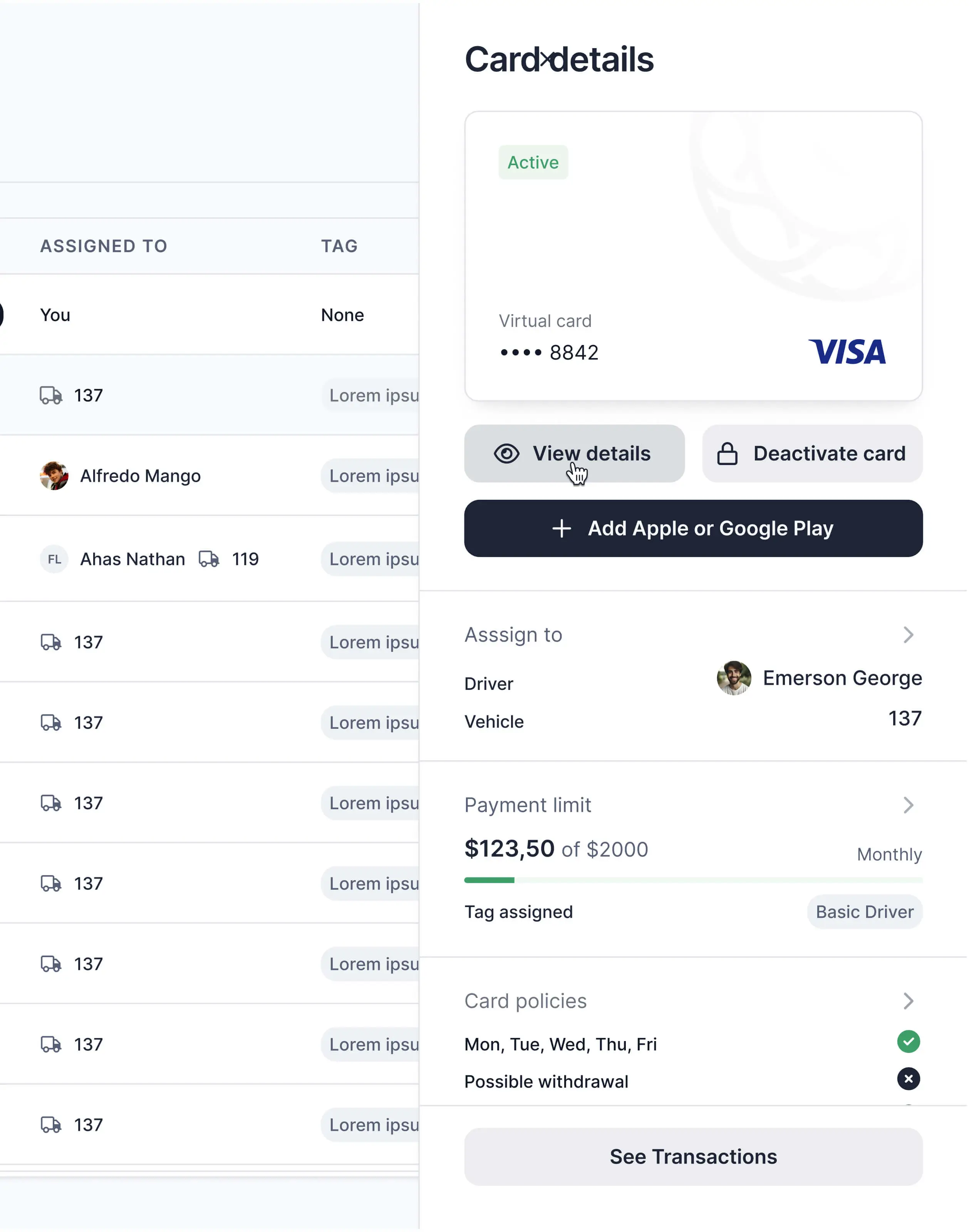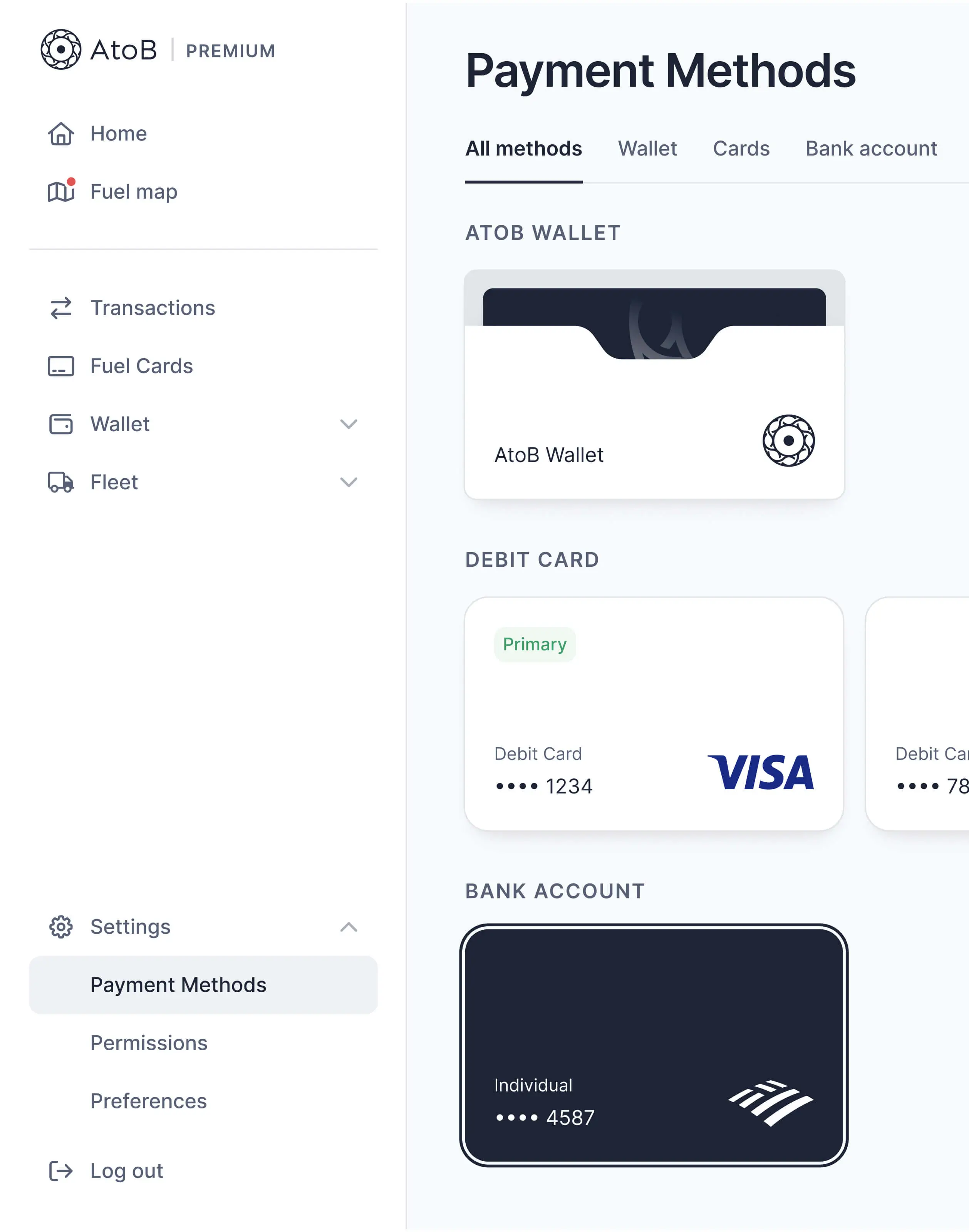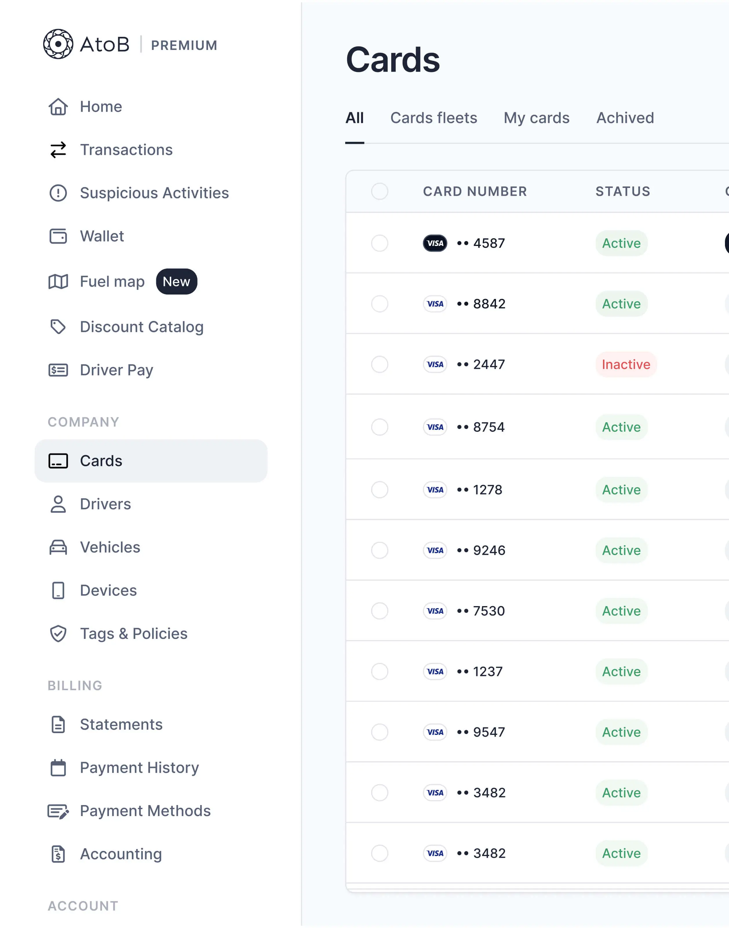 Refonte du design system et de l'interface de AtoB, SaaS de gestion des paiements carburant pour entreprises de transport.