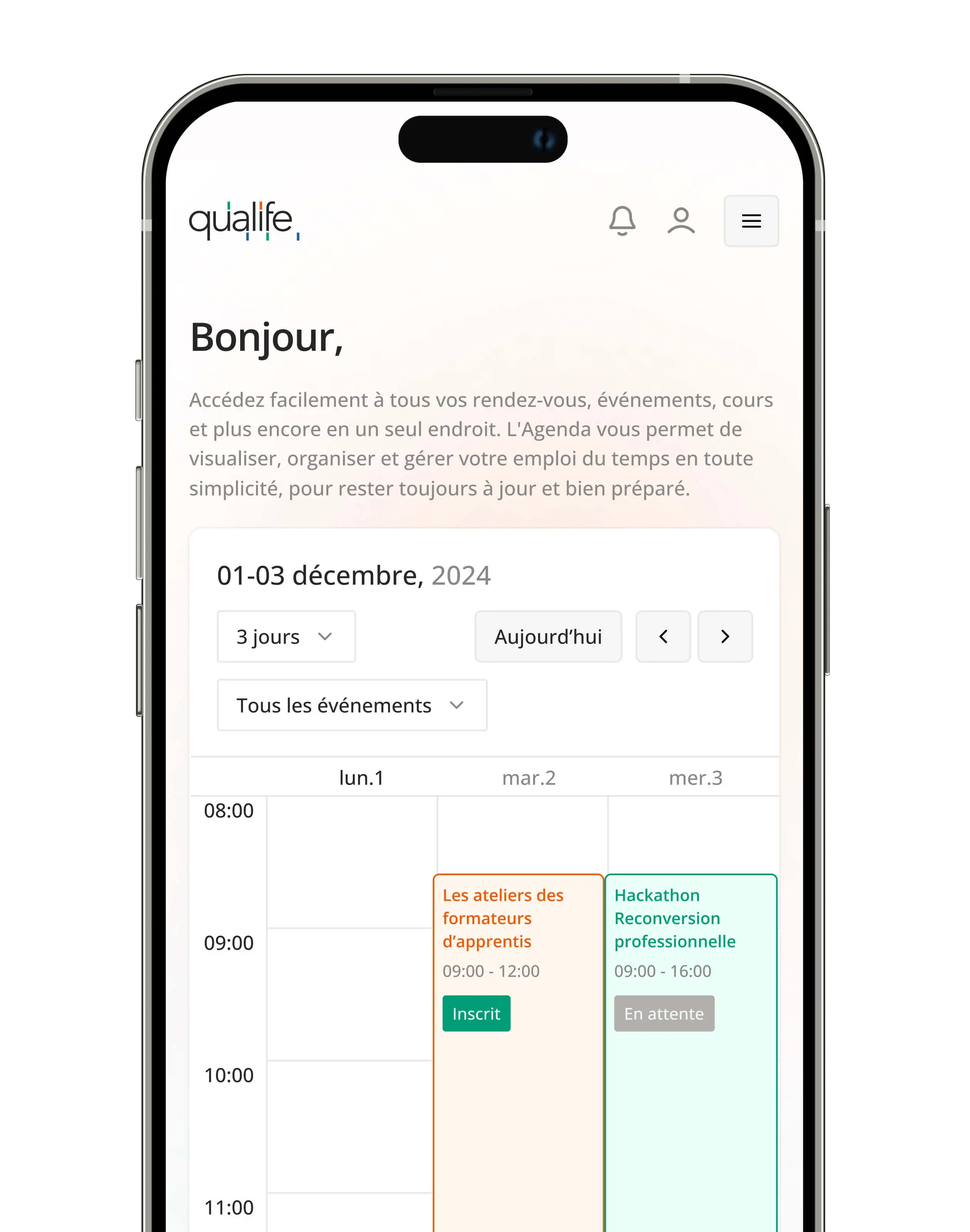 La Fondation Qualife souhaitait développer une application web pour offrir à ses bénéficiaires une meilleure autonomie dans leur parcours vers la formation ou l'emploi. J'ai conçu un design system complet pour garantir une interface moderne et intuitive. L'application intègre plus de 8 fonctionnalités clés permettant aux utilisateurs de gérer leurs rendez-vous, s'inscrire à des événements et accéder facilement à des ressources en ligne.