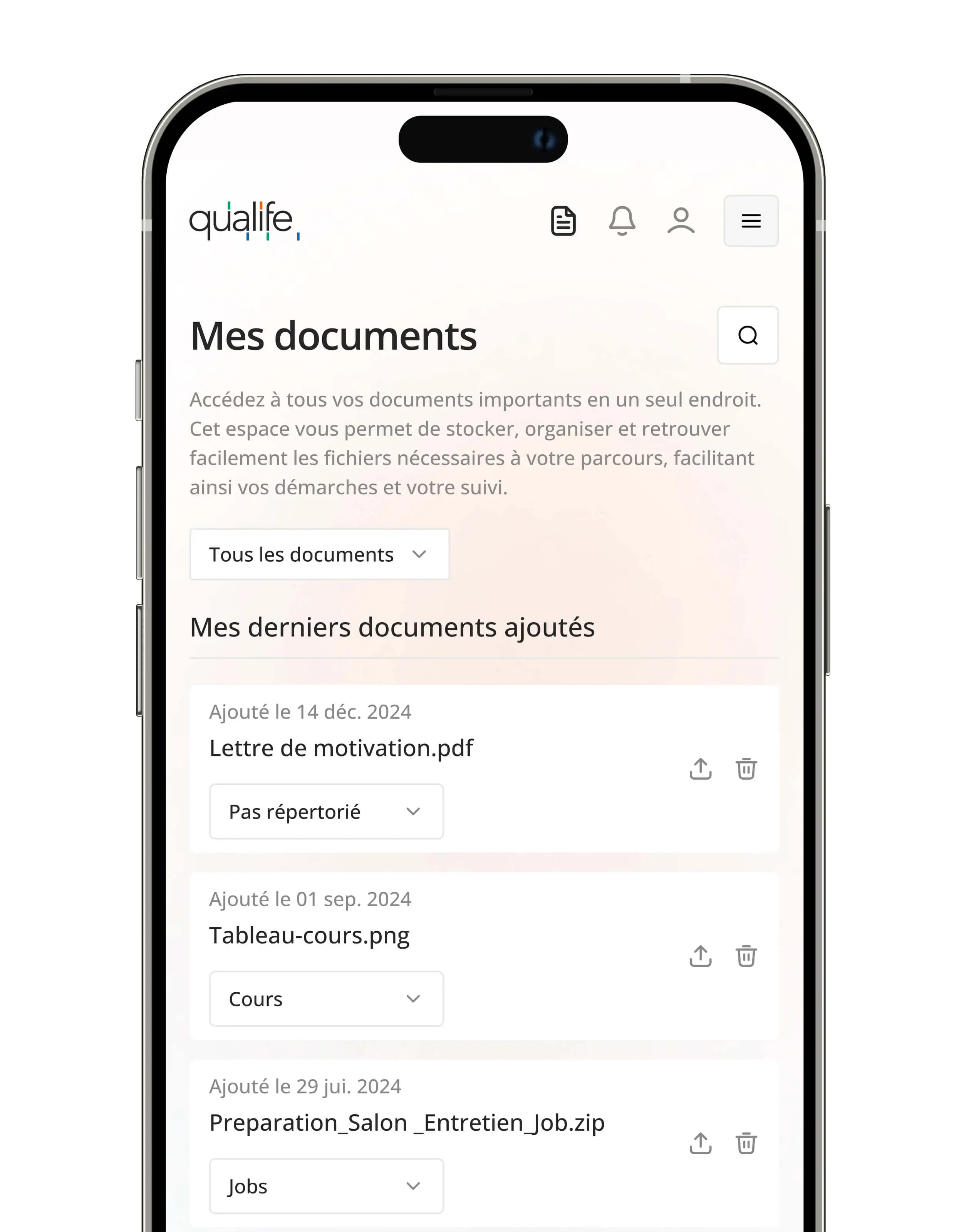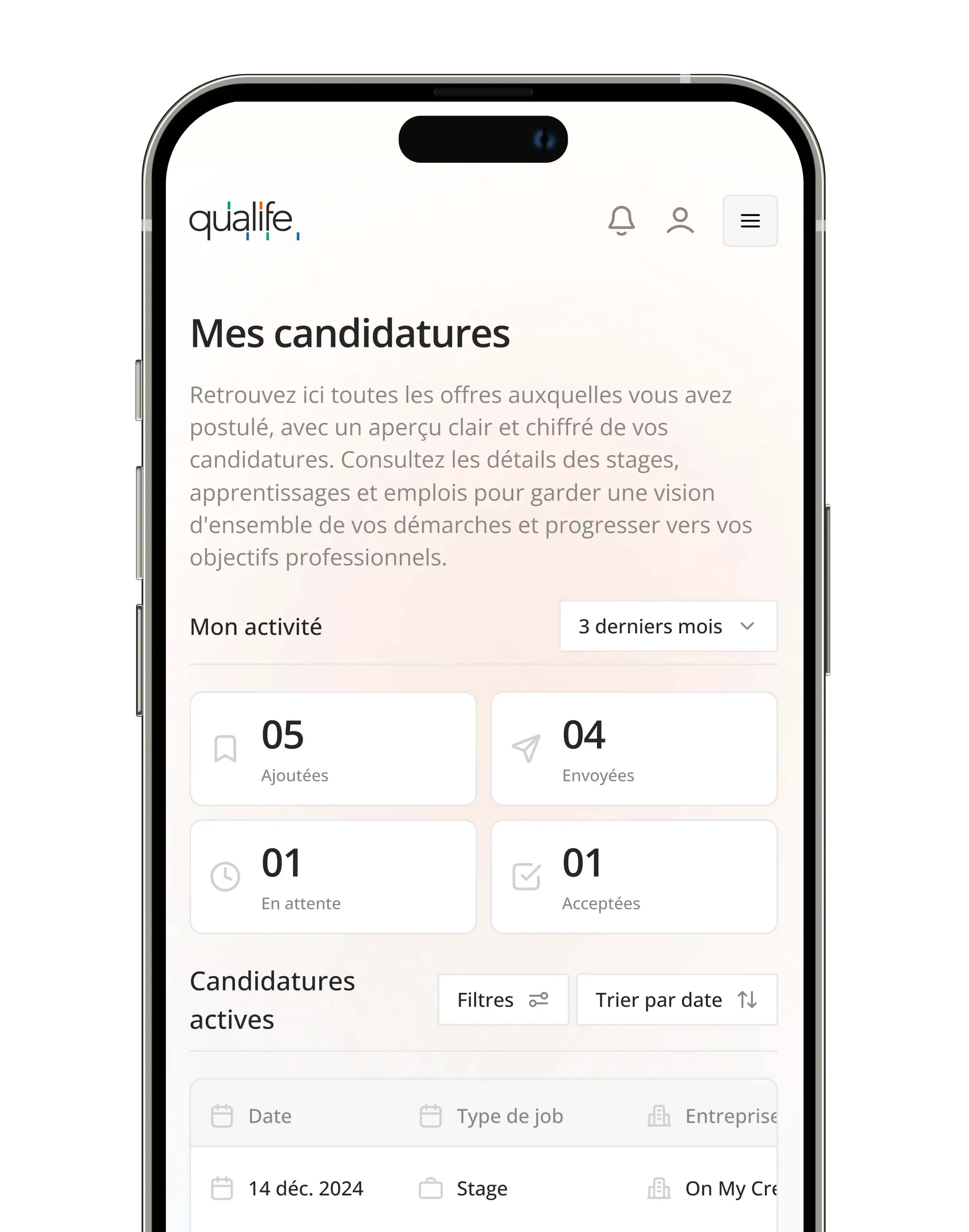 Conception de la webapp de Qualife, plateforme d'accompagnement vers l'emploi et la formation. Design system complet et UI pour une expérience autonome et accessible.